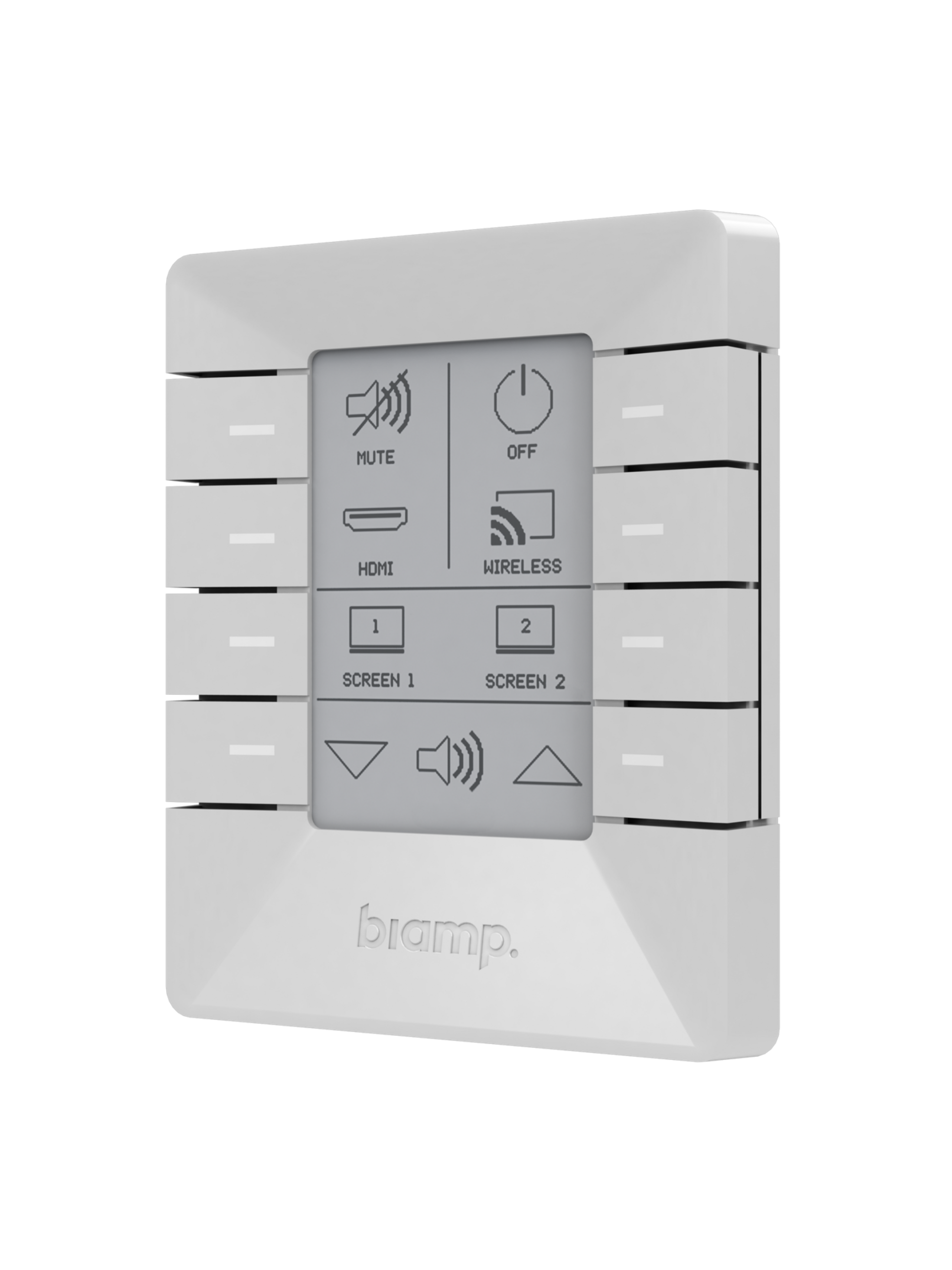 Equipped with a software-configurable E Ink display, the Uniform can be quickly programmed and customized within Project Designer as the needs of the room change over time, making the Uniform a very flexible and cost-effective control solution.