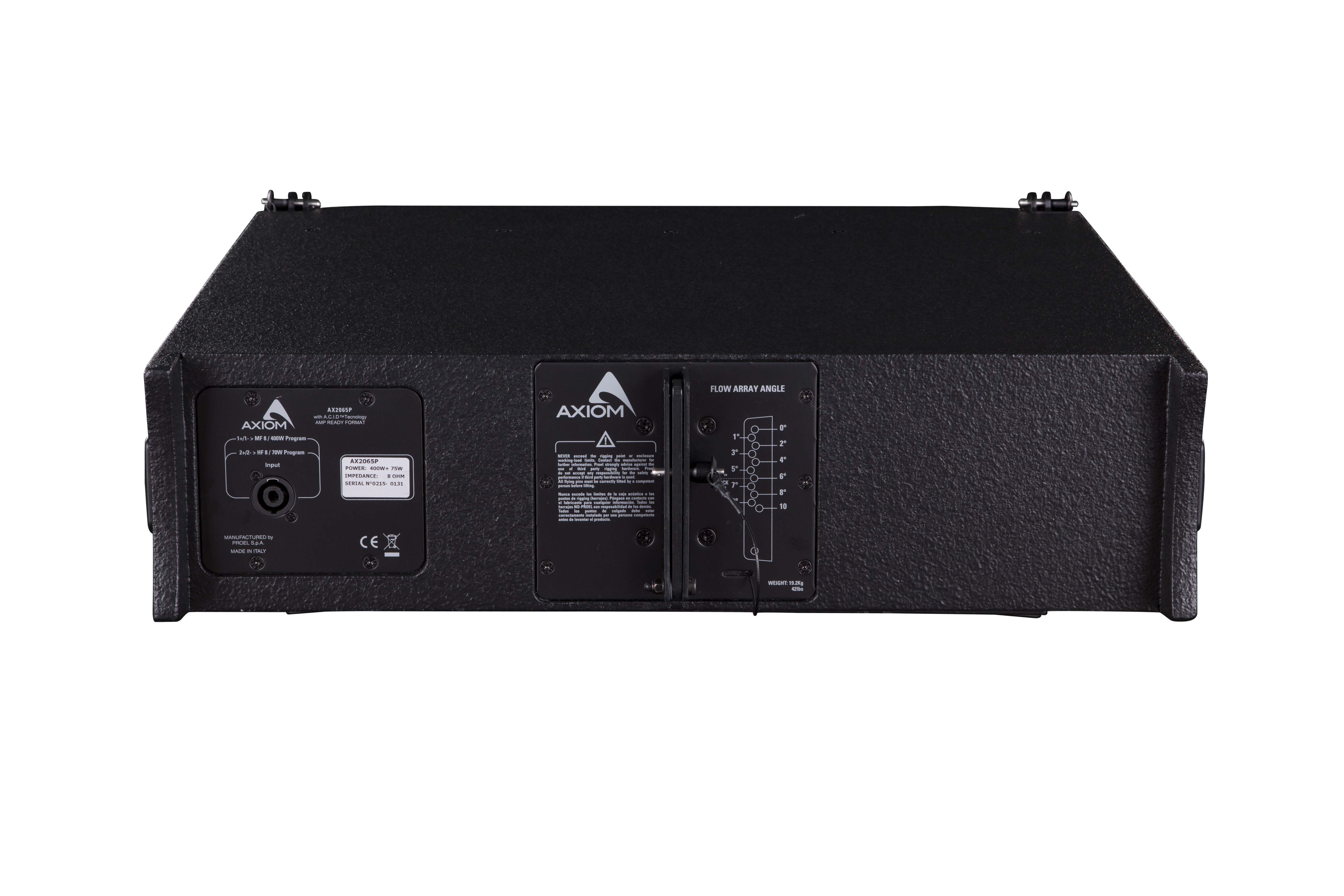 The AX2065P is a new line array element that combines superior sound quality with easiness and flexibility in a simple system with a very convenient price-to-performance ratio. The AX2065P has been designed both for rental live sound applications and for fixed installations and has been engineered for the simplest use possible but without sacrificing anything in sound quality and performance.
